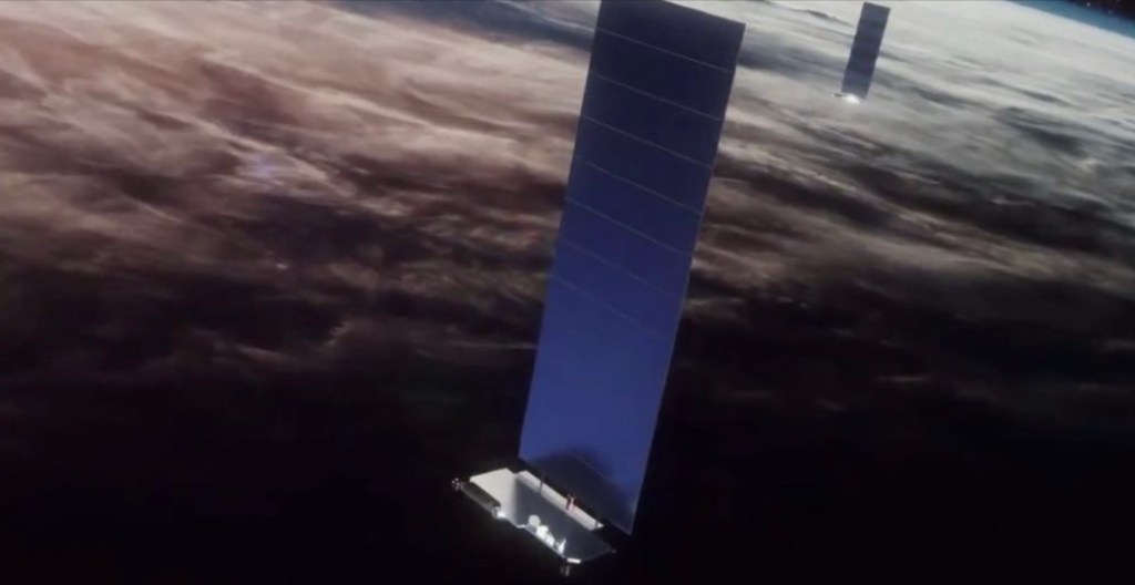 Image credit: SpaceX. In real life the satellites are not that close together!