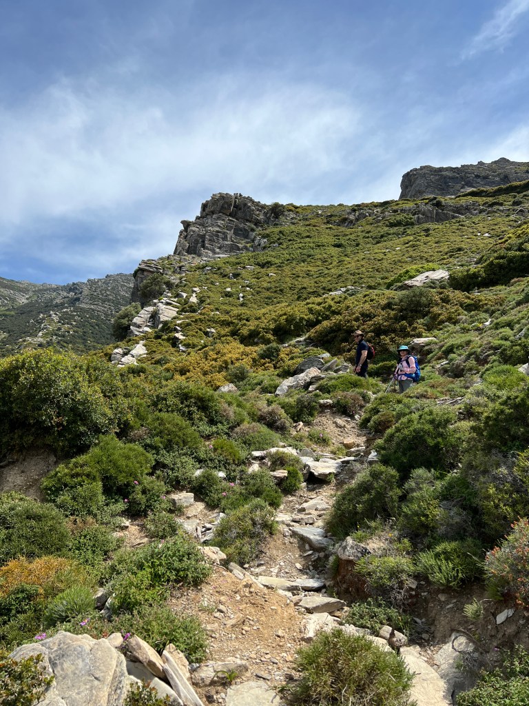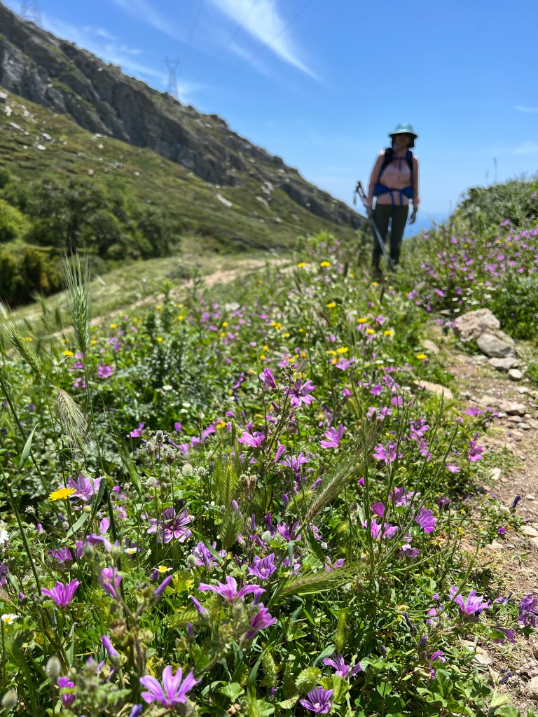 Karystos is not a heavily visited tourist destination like Santorini or Mykonos, which makes it a quieter, more relaxing location as a base for hiking the surrounding mountains with the British tour group we joined after our week in Athens. Those mountains feature a number of interesting sights, though the trails are very rough and our routes included long stretches of monotonous dirt roads. A profuse springtime wildflower bloom, and the occasional tortoise, livened up some arduous hiking!